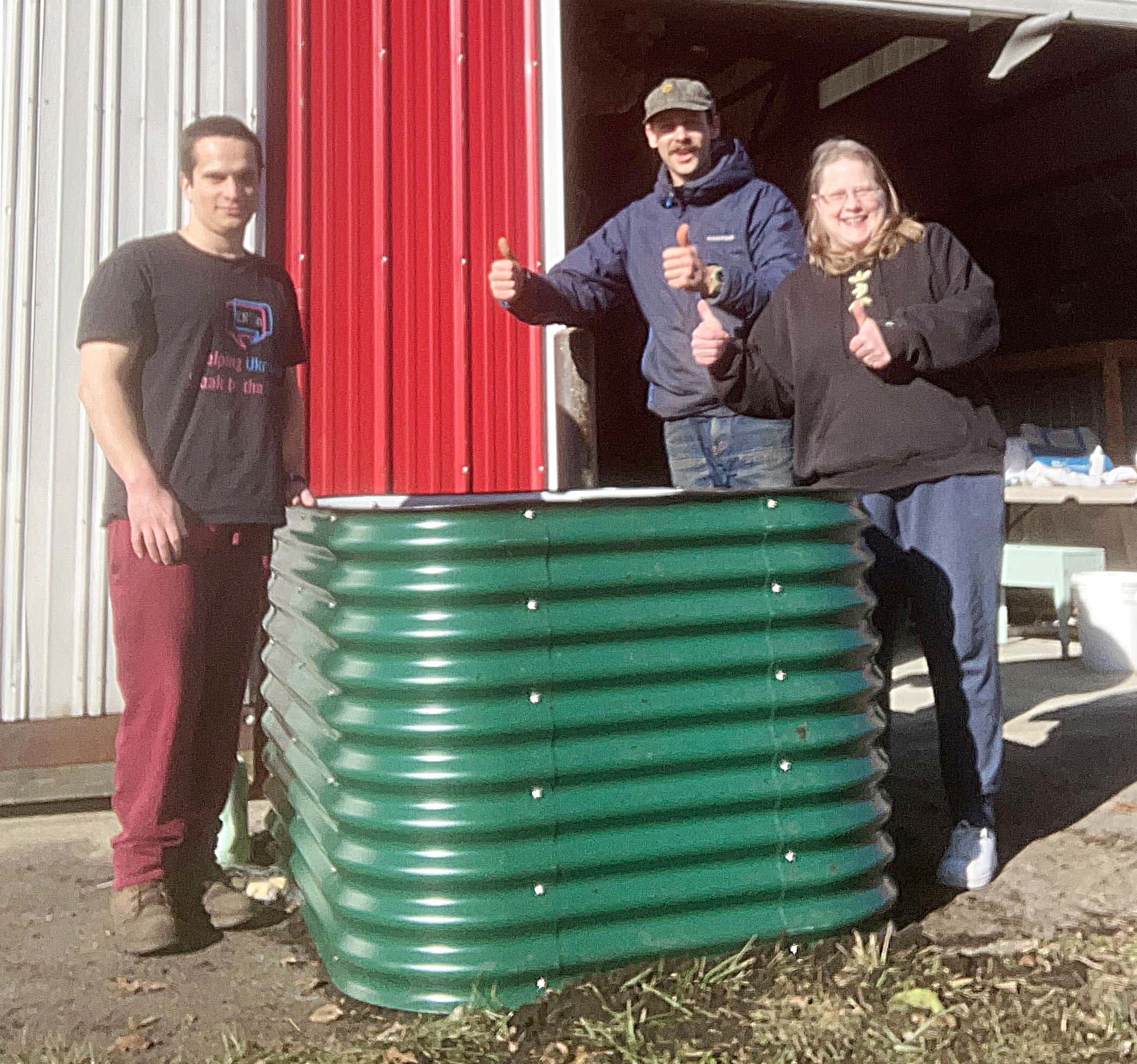 During World War II, millions of “Victory Gardens” produced about 40 percent of all the vegetables consumed in the U.S. Now, as grocery prices continue to rise sharply, people are seeing the value of growing healthy, inexpensive food at home. This year, OCS launched a Build-a-Garden pilot program to provide beds to Oberlin residents interested in getting started with gardening. AmeriCorps VISTA Ethan Hill, who is with OCS on a one-year contract, worked with Lead Gardener Henry Yeager to survey neighbors who access the food pantry about their needs, come up with a variety of solutions, and get supplies to build beds. Here they are with Jayleigh Rosenthal, who received a metal raised bed!