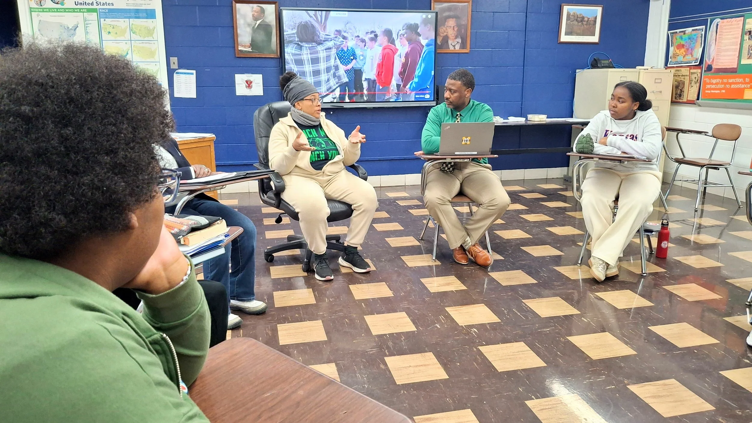 Our Volunteer Coordinator, Rosa Gadsden, stopped by Kurt Russell’s current events class at Oberlin High School on March 17. She talked to students about the services OCS provides: our food pantry, emergency assistance programs, and other resources we offer to make families more resilient against hardships. Led by Russell (the 2022 National Teacher of the Year), students discussed food insecurity and explored questions about how society cares for neighbors in need. Russell also planned a class visit to the Cooper Center so students could see how OCS operates and learn more about ways to help the community.